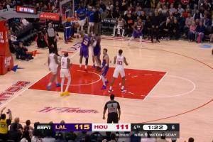 下一篇: 燃尽了!詹姆斯先连续防守又全力冲刺上篮被犯规 手肘再次受伤!