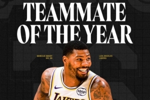 湖人官方晒出海报祝贺斯玛特:祝贺斯玛特入围年度最佳队友奖候选名单?!