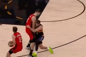GIF-申京掩护犯规 火箭挑战失败